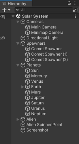 This project is a simulation of the solar system with some fun ideas thrown in. I tried to simulate real values to make the solar system look more realistic. Of course, with a fun twist.